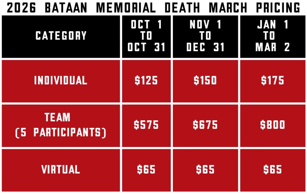 - Refunds will NOT be authorized once registered nor will they be issued due to inclement weather or cancellation of the march. Specific situations such as military deployment or medical emergency will be taken into consideration, however the individual must contact us directly and provide appropriate documentation.